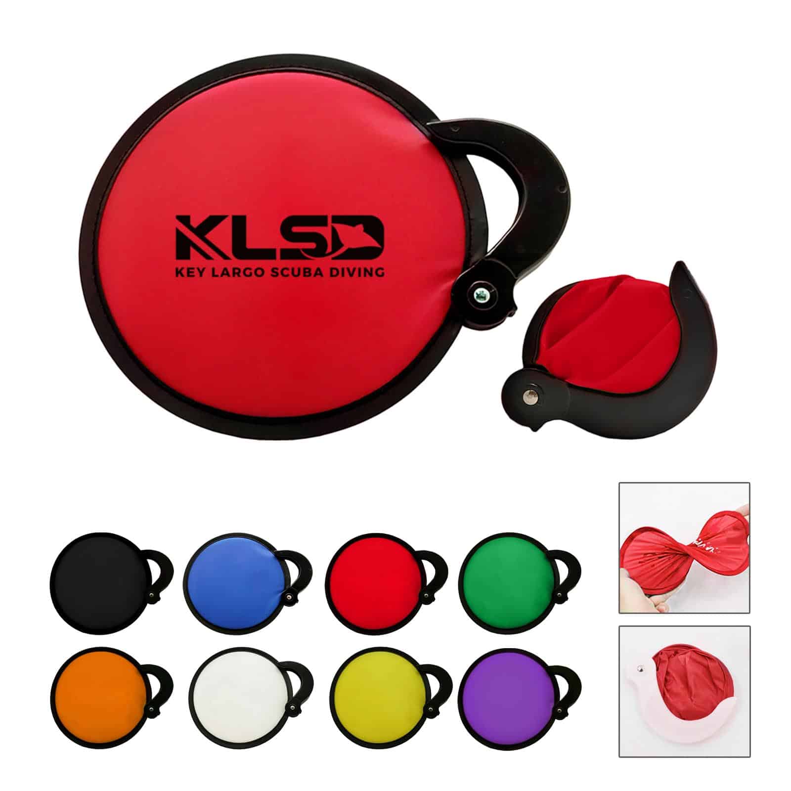 This compact, lightweight, nylon fan folds into its sturdy handle making it easy to take with you wherever you go. The collapsible folding fan comes in a variety of colors and is a perfect promotional product for those warm summer days! NOTE: • Due to the stretchable nature of the fabric used in this product, stretch lines may appear. 7″ Diameter
