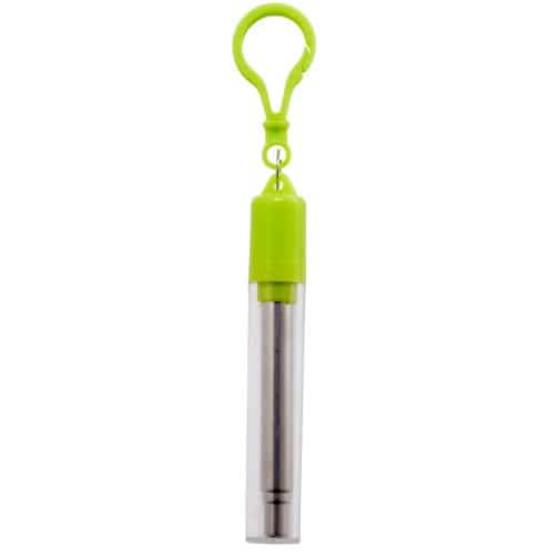End the use of wasteful plastic straws and start thinking green with these reusable straws that you can easily bring along! This stainless steel straw has collapsible action that allows it to be carried in the 6 1/4″ x 5/8″ plastic carrying case with a color lid and clip ready to attach to your keys or favorite chain. The included cleaning brush lets you enjoy a fresh straw every time. 6.25″ W x 0.625″ H